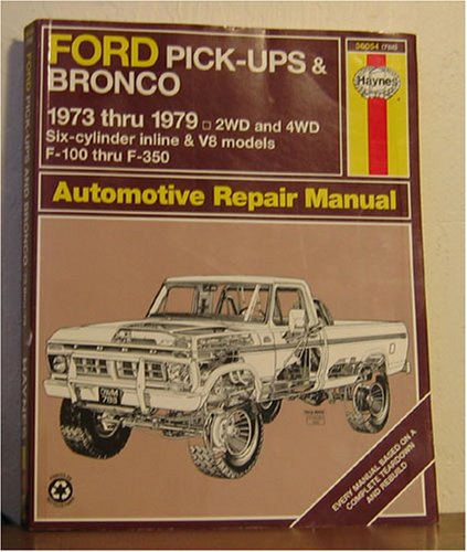 Manual for Ford pick-ups & Bronco, 1973-1979, 2WD and 4WD, six-cylinder inline & V8 models, F-100 thru F-350, manual and automatic transmissions.